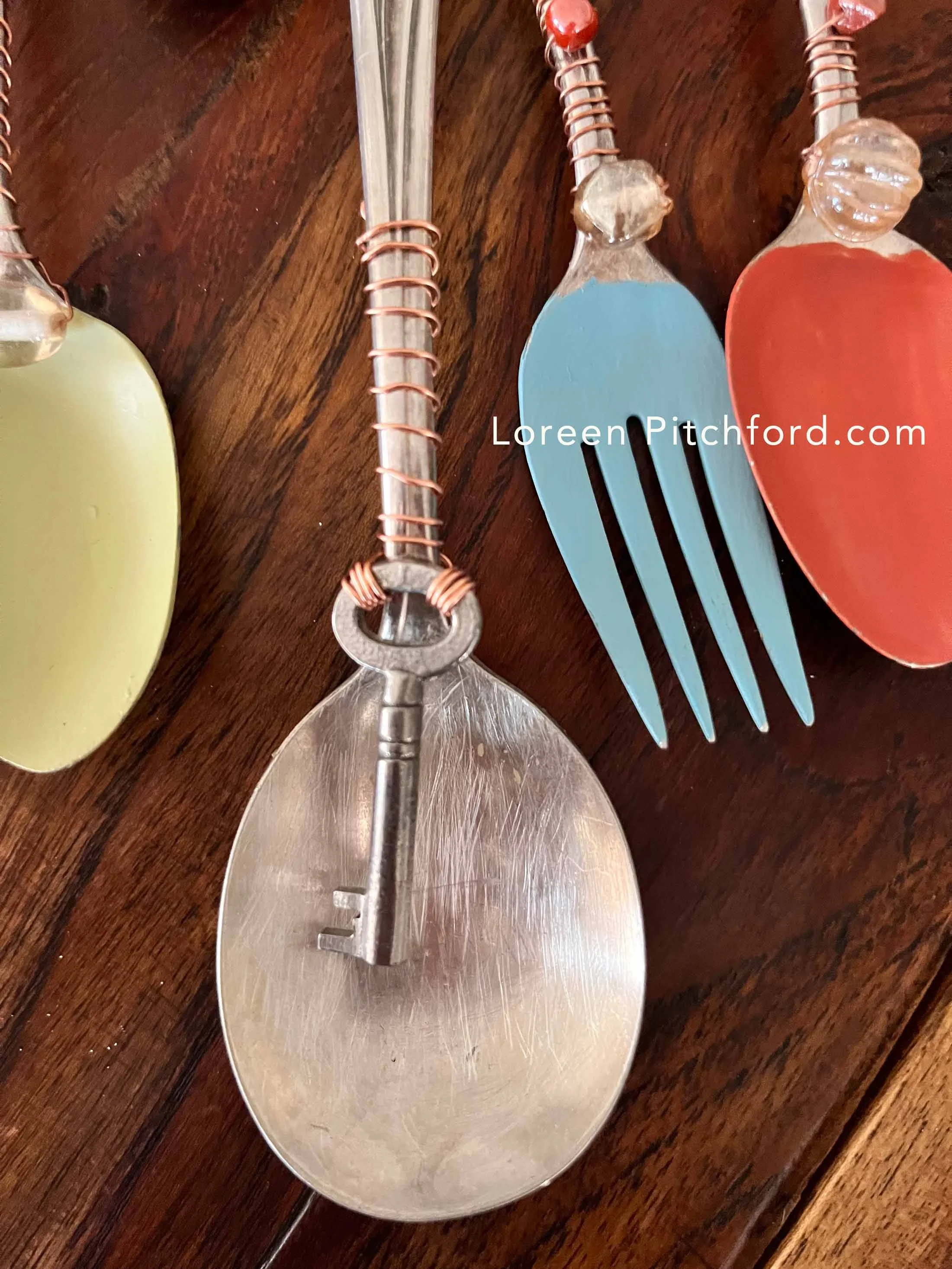 Years ago my mom gave me her silverware. I wanted to create something with the silverware in her memory. She often had honored quest and would cook all day and the table setting had to be just right. White linen tablecloth with napkins, florals, and centerpieces in colors that matched the particular event we were celebrating. I have appreciation and positive memories from the experiences and fullness in my heart of gratitude to have had a fantastic mother.